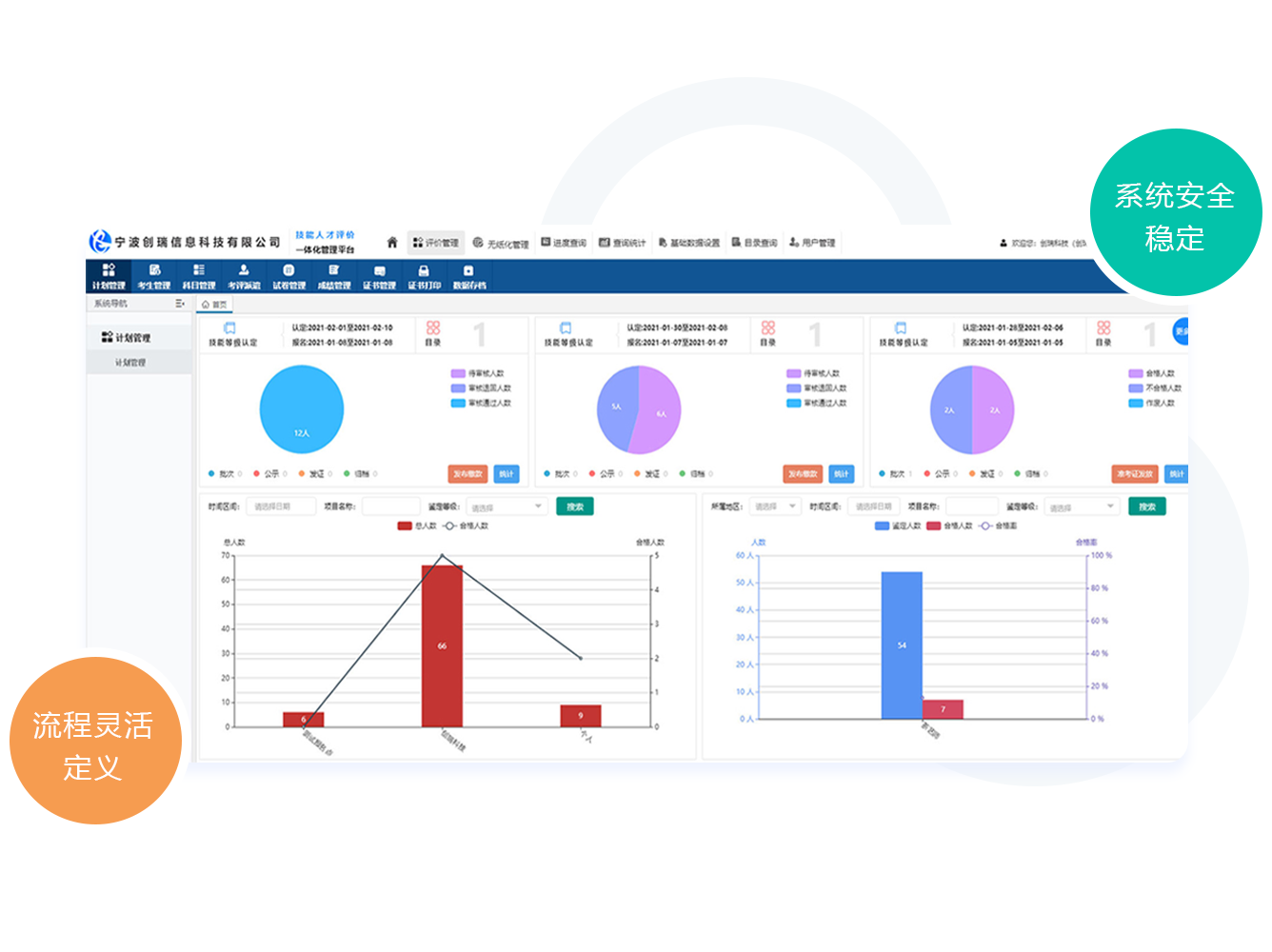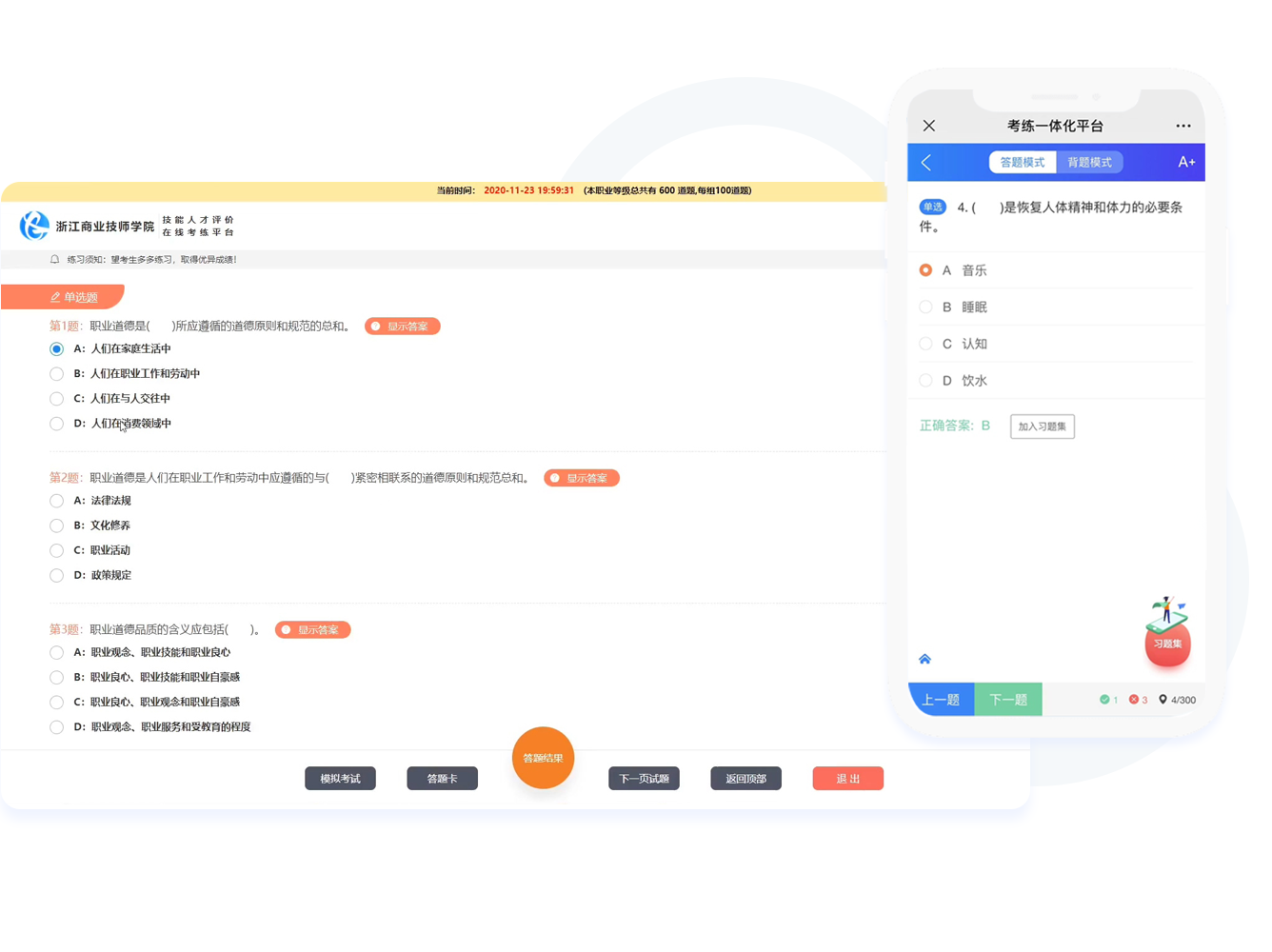为开展考核评价机构按照自身考核标准的要求,通过测量学原理,建立知识考试资源库,对职业等级、知识结构、考题内容和组卷模型全方位的管理与命题服务同时满足无纸化考试和传统考试的需求